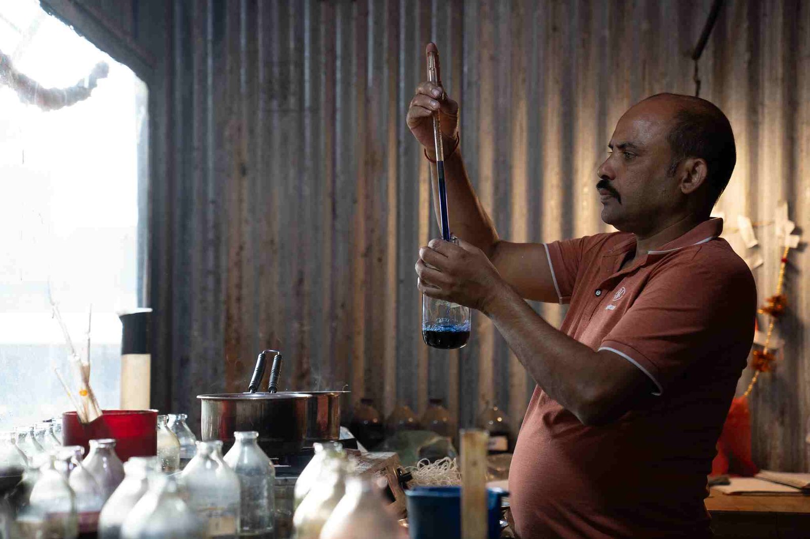 We use high-quality Swiss Ciba dyes from Clariant, as well as vegetable dyes based on client preferences. Our dyeing master carefully measures and boils the dyes to achieve the perfect color match. Since color is crucial in rug making, we ensure all dyes are of top quality and properly approved. After dyeing, yarns are dried either in the shade or under the sun, depending on the color.